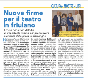 L’8 ottobre 2017 al Teatro Palamostre di Udine è andata in scena la festa per i trent’anni dell’Associazione Teatrale Friulana (ATF), una realtà nata dal 1987 per “valorizzare a tutti i livelli la lingua, la cultura e il teatro friulani, senza precludere in nessuna maniera le altre espressioni culturali e linguistiche“.